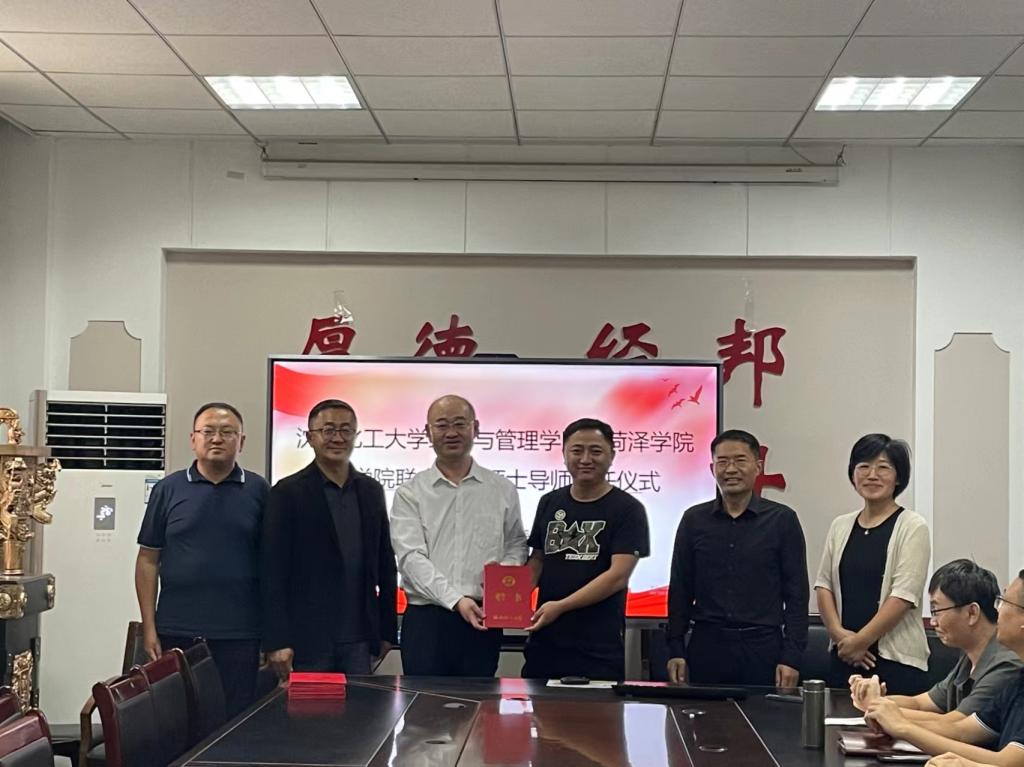 9月26日交流座谈会在菏泽学院1号教学楼119会议室举行。菏泽学院商学院党委书记、党委副书记朱贺、副院长洪梅香和专业主任、学科带头人、学工队伍等参加了座谈交流。座谈会由尹鹏主持。会上,尹鹏代表商学院对我院领导老师的到来表示热烈欢迎,并从组织架构、人才培养、科学研究等方面介绍了商学院的基本情况。李丙文书记从我院发展历史、学科背景、办学理念、发展现状等方面作了简要介绍。随后,双方围绕研究生联合培养运行机制、学生活动开展情况及科研合作等方面展开了探讨。最后,进行硕士生导师聘任仪式。座谈会后,商学院师生于学校图书馆报告厅聆听了刘铁民副院长的沈阳化工大学经济与管理学院研究生培养专场报告并进行了学生考研动员。