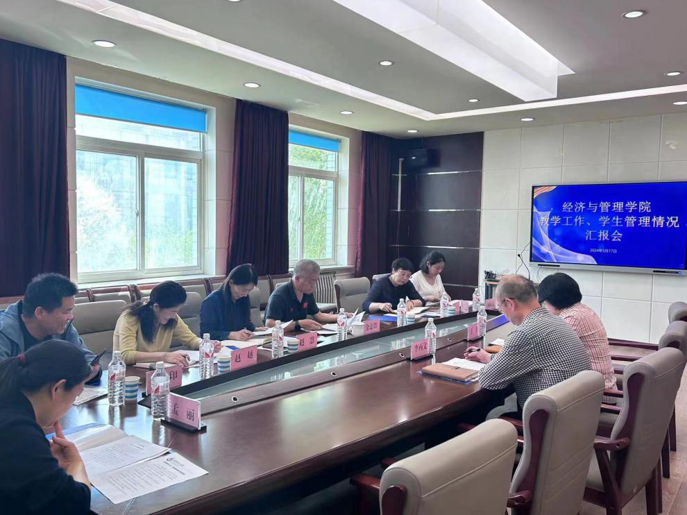 2024年5月17日,为深入了解教育教学、人才培养工作实际情况,掌握经济与管理学院教师教学与学生学习平行并进、互促提高的工作方法、成效等情况,金志浩副校长一行到经济与管理学院开展了教学工作、学生管理等情况调研活动,教务处处长于三三、副处长姚慧,质量办主任赵慧、副主任赵越,学生处副处长王良印等参加了此次调研活动。