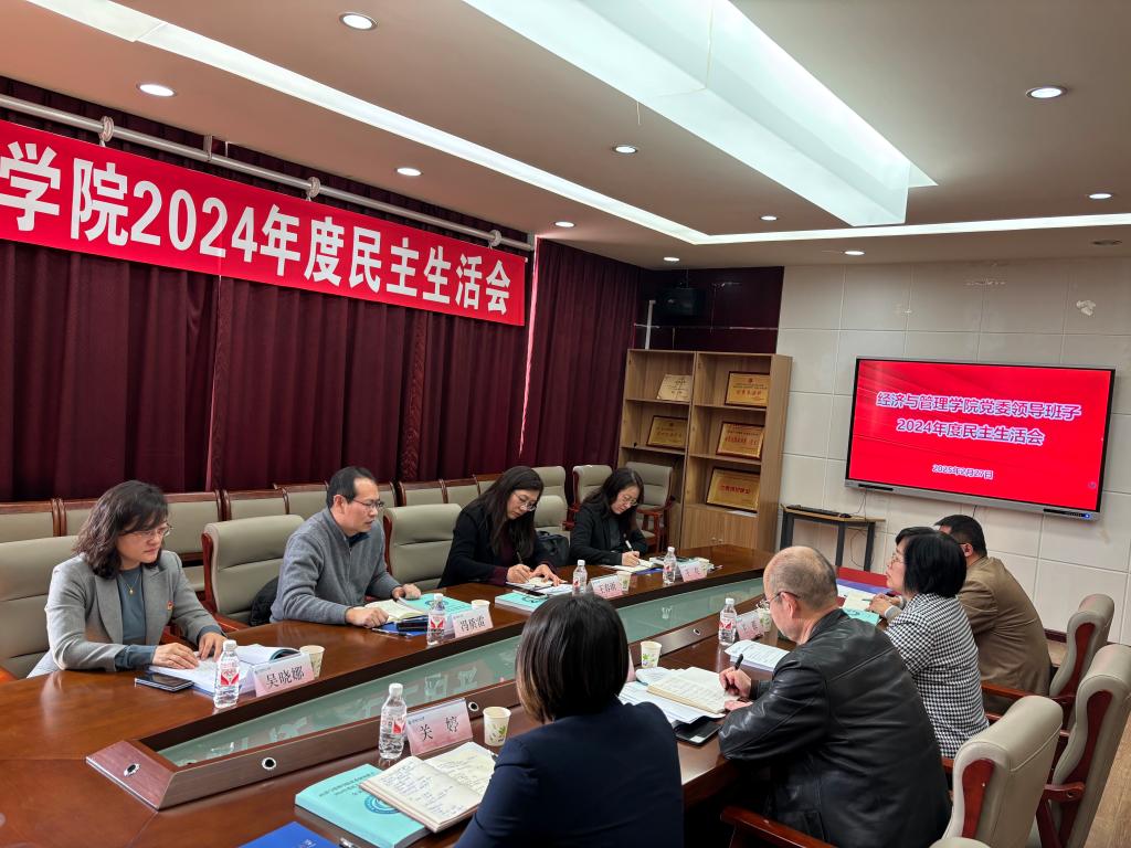 根据沈阳化工大学《关于开好2024年度民主生活会的通知》(组织﹝2024﹞37号)要求,2月27日上午,经济与管理学院党委领导班子召开2024年度民主生活会。学校党委常委、组织部部长冯质雷参加会议,党委第一督导组王春雨、王亮、吴晓娜到会督导并作点评。学院党委书记李丙文主持会议并作表态发言,党委领导班子成员王蓉、关婷、刘铁民参加会议。
