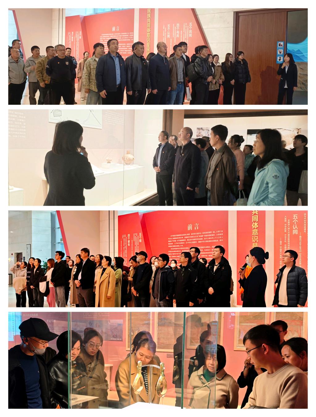 主题展由文明初章、融合汇聚、并同华夏、中华一统、烽火铸魂、同心兴业、伟大转折、共谱新篇8个单元组成,展出了600余件文物藏品、400多幅图片和9部视频,全体师生党员在讲解员的带领下认真观看历史文物展陈,细心倾听文物背后的民族交往交融史,深刻感受辽宁大地自古以来各民族共同开拓疆域、共创文明成果、共守精神家园的历史脉络,深切体悟中华民族多元一体格局在辽宁的生动实践。