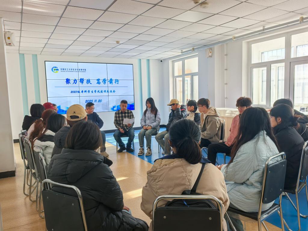 为全面落实立德树人根本任务,切实加强学风建设,引导同学们端正学习态度,明确成长方向,11月20日,经济与管理学院在生活城“一站式”学生社区成功举办“聚力帮扶,笃学前行”——2023级本科学生学风建设交流会。经济与管理学院副院长刘铁民、2023级学生辅导员王怀出席交流会,现场与学习困难学生开展暖心交流。