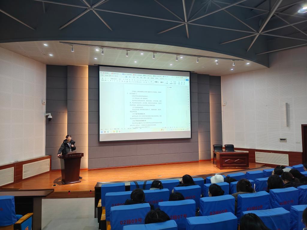党委副书记关婷聚焦毕业生的职业发展与人生规划展开分享。她结合学院往届优秀毕业生的职业案例,从职场心态调适、角色转换适应、人际关系处理等方面为同学们提供实用建议,鼓励大家既要怀揣“直挂云帆济沧海”的豪情壮志,也要保持“脚踏实地行稳致远”的务实作风,在新的人生赛道上找准定位、深耕细作。