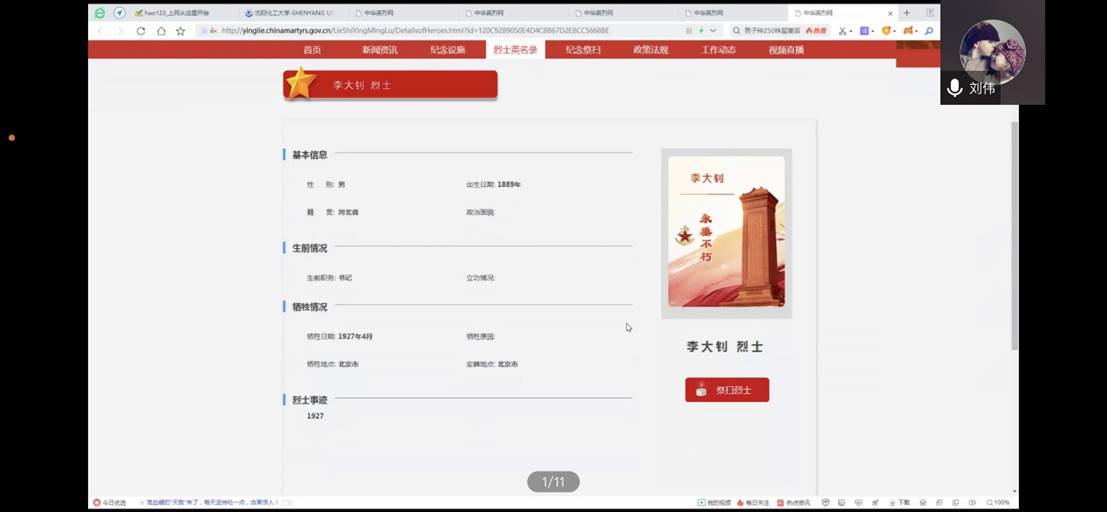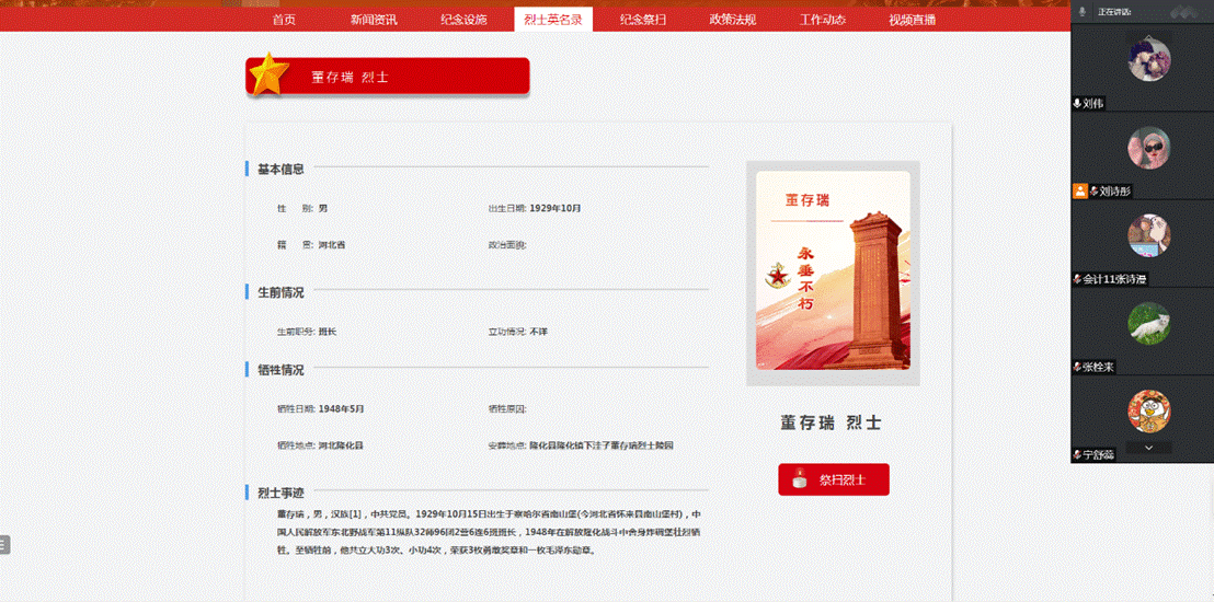 为深入传承弘扬英烈事迹和精神,引导学生党员传承弘扬革命先烈的优秀品质,引领崇尚、缅怀、学习、捍卫英烈的风尚,经管本科生党支部于4月6日18:00通过线上党员大会形式开展以“传承英烈精神 赓续红色血脉”为主题的“云端祭英烈”党日活动。