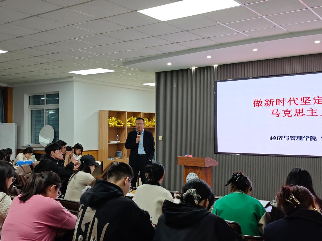 10月10日晚18:00,经济与管理学院2025年秋季入党积极分子培训党课在通明楼311报告厅正式开讲。本次党课以“做新时代坚定的青年马克思主义者”为核心主题,旨在深化入党积极分子对马克思主义理论的理解,引导青年学子树立正确理想信念,由学院组织员侯延风担任主讲人,学院全体入党积极分子到场参与学习。