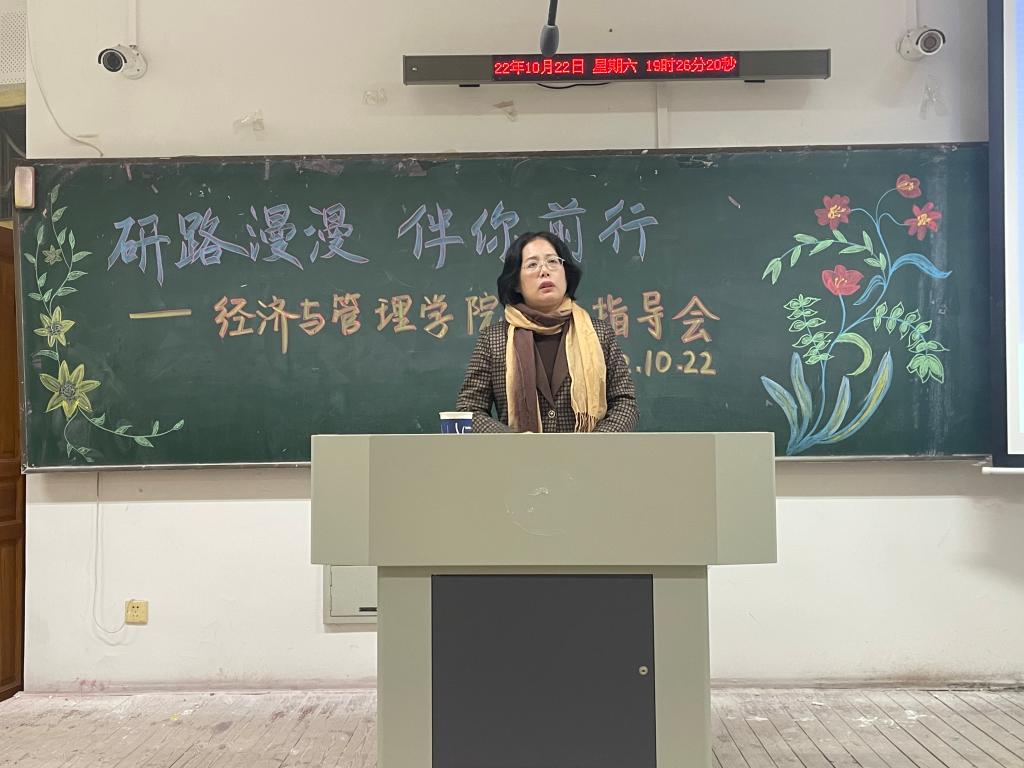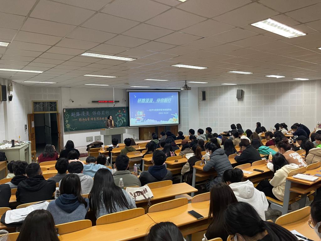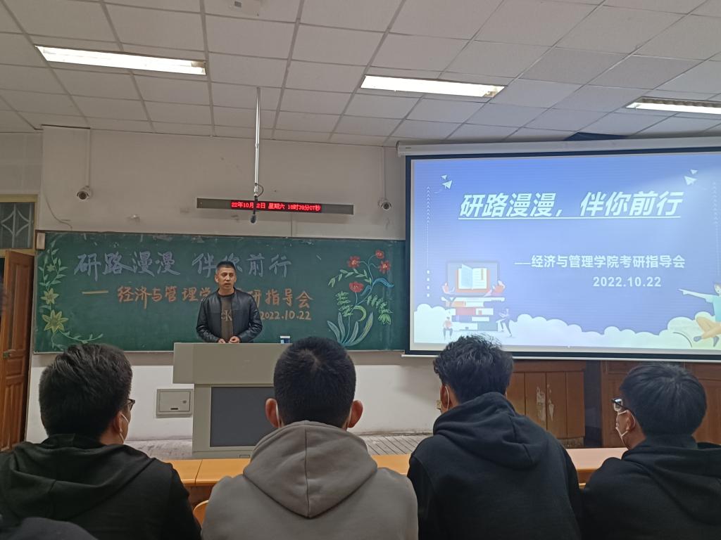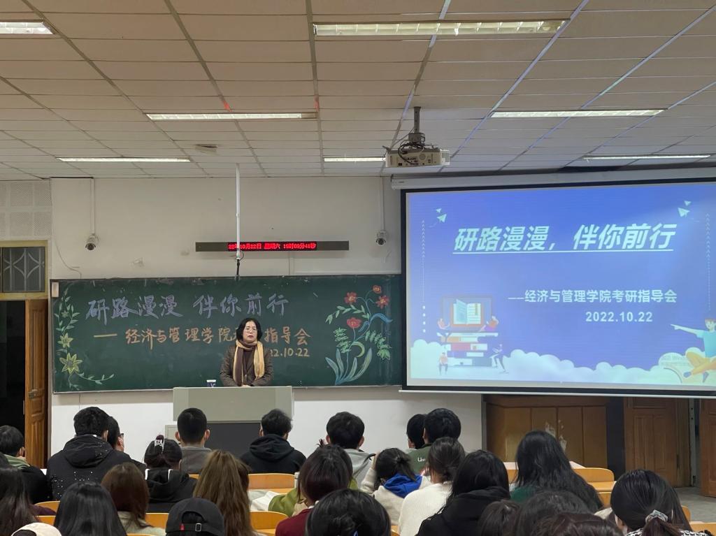 2022年10月22日18时30分,经济与管理学院于通明楼338教室召开了面向2019级和2020级本科生的考研指导会。会议由王怀老师主持,王蓉院长进行经验分享与指导。本次会议在极大地鼓舞了2019级本科生考研信心的同时,也为2020级本科生做出了细致的考研规划。