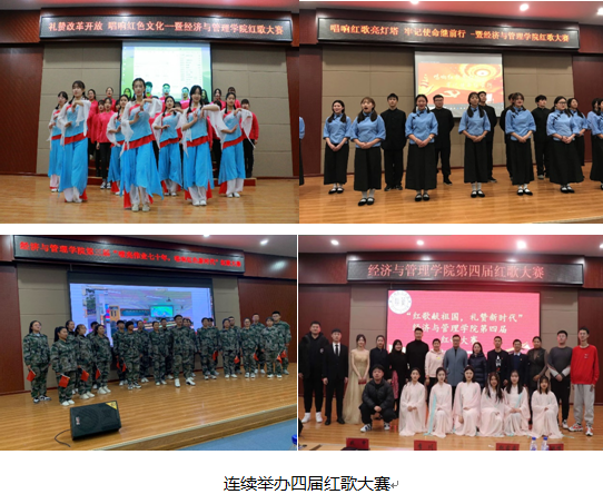 崇高理想和坚定信念,是我们党历经磨难、取得胜利的关键所在。新时代,广大青年应坚定理想信念,将国家使命与个人的人生价值相结合,在各种考验中砥砺前行。因此,经济与管理学院一直注重和倡导学生德育与理想信念的培养,引领学生树立正确的核心价值观。自2018年以来,召开百余次青马工程主题教育大会,并积极引导学生按时完成青年大学习,学习率多次排在学校首位。依托学院“红色文化教育基地”,成立“红色文化宣讲团”,定期开展红色宣讲活动,此外,还连续举办了“红歌赛”、红色诗朗诵、红色绘画书法展等多项活动,以此向青年学生传承红色基因,厚植爱国主义情怀。