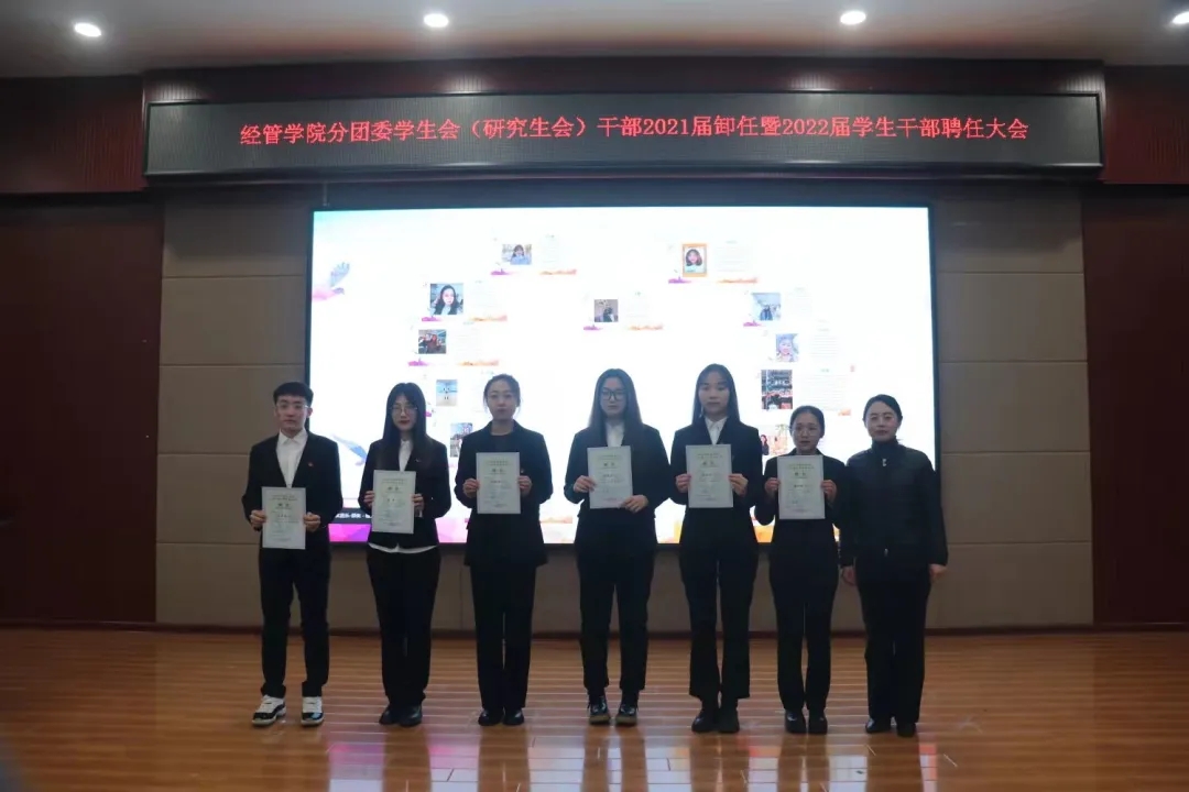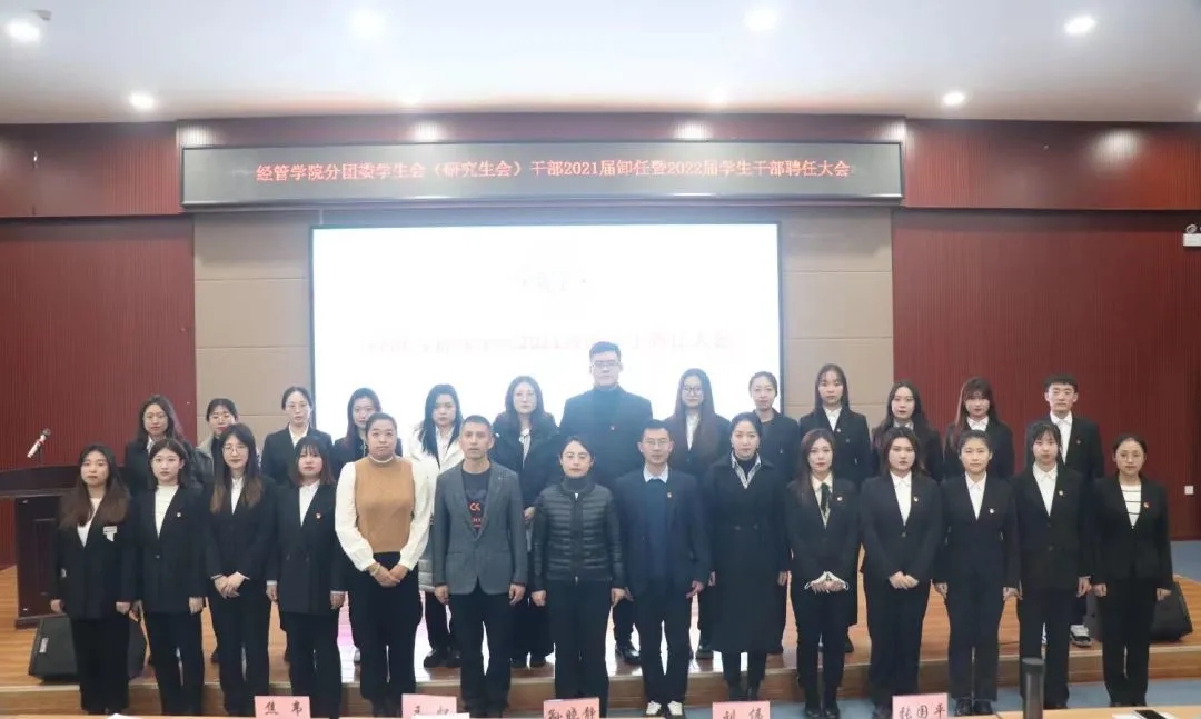 12月8日下午13:30,经济与管理学院在青年之家召开了班导生、学生会干部聘任大会。学工办全体教师、全体受聘学生、部分学生会代表参会,大会由分团委书记、19级辅导员王怀主持。